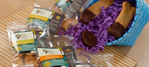For over 10 years, Paw Street Barkery has been making yummy dog treats for our furry family members. How did it all start? Our owner Shawn, a Microbiologist, wanted to know exactly what his pup was eating and so came up with a dog treat he could trust. That ended up being our Chicken Bow-wow treat! Since then we've created over 7 Signature and 5 Gourmet treats, with many fun Seasonal Flavors that make appearances throughout the year.
